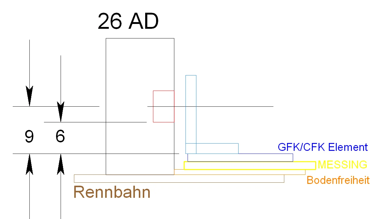 Die Lagerhöhe wird nach Auswahl gemessen – dabei misst man von der Unterkante des Achsbocks bis zur Unterkante des Kugellagerlochs. Zur Ermittlung der Mitte des Lagers sind anschließend 3 mm hinzuzufügen.