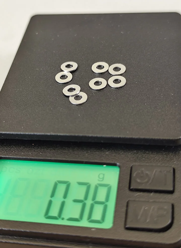 M2 - üblich ist ein 2,1 mm Loch AD = Aussendurchmesser H - Höhe oder Dicke der Scheibe Gewicht: 0,048g