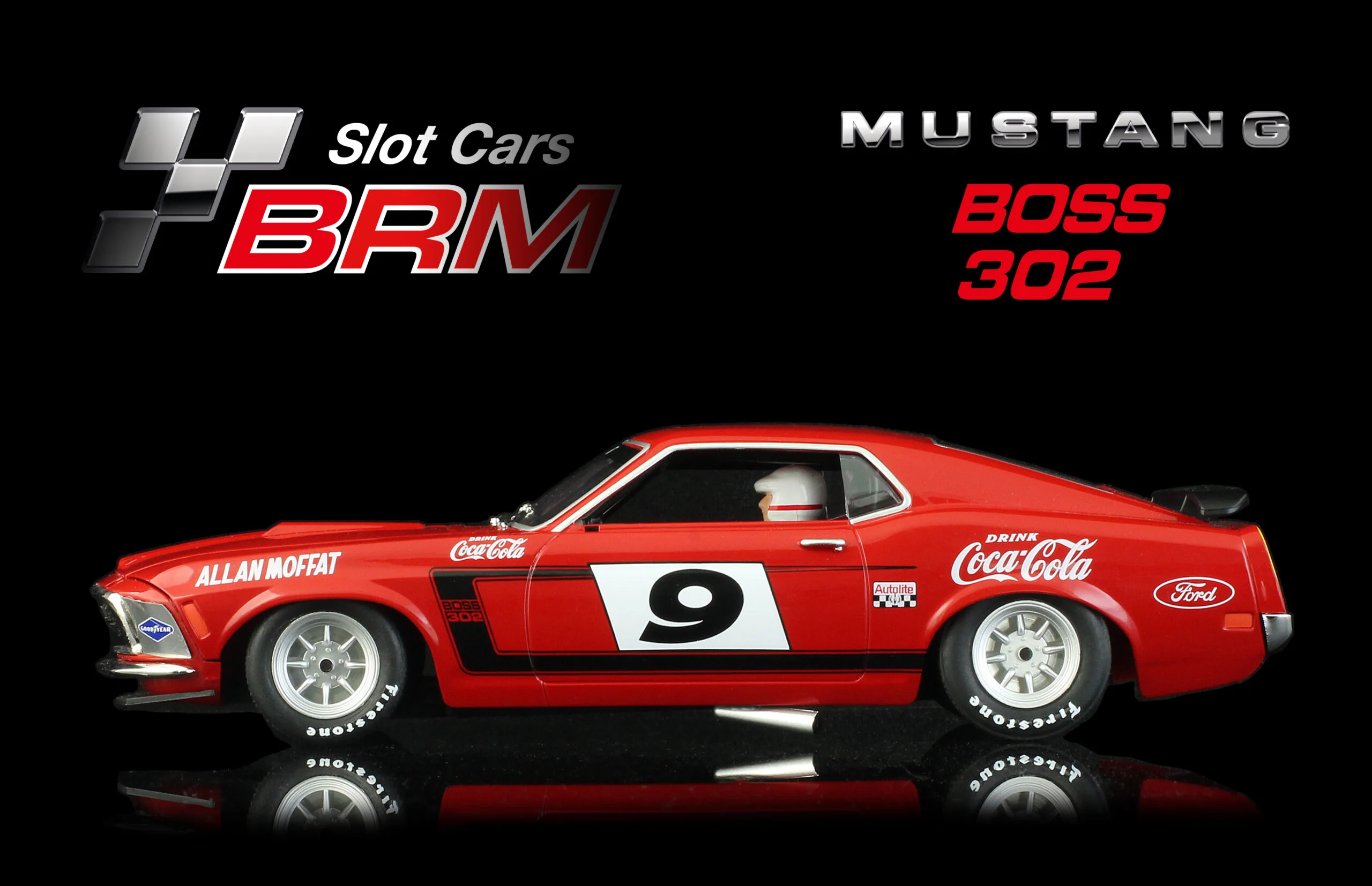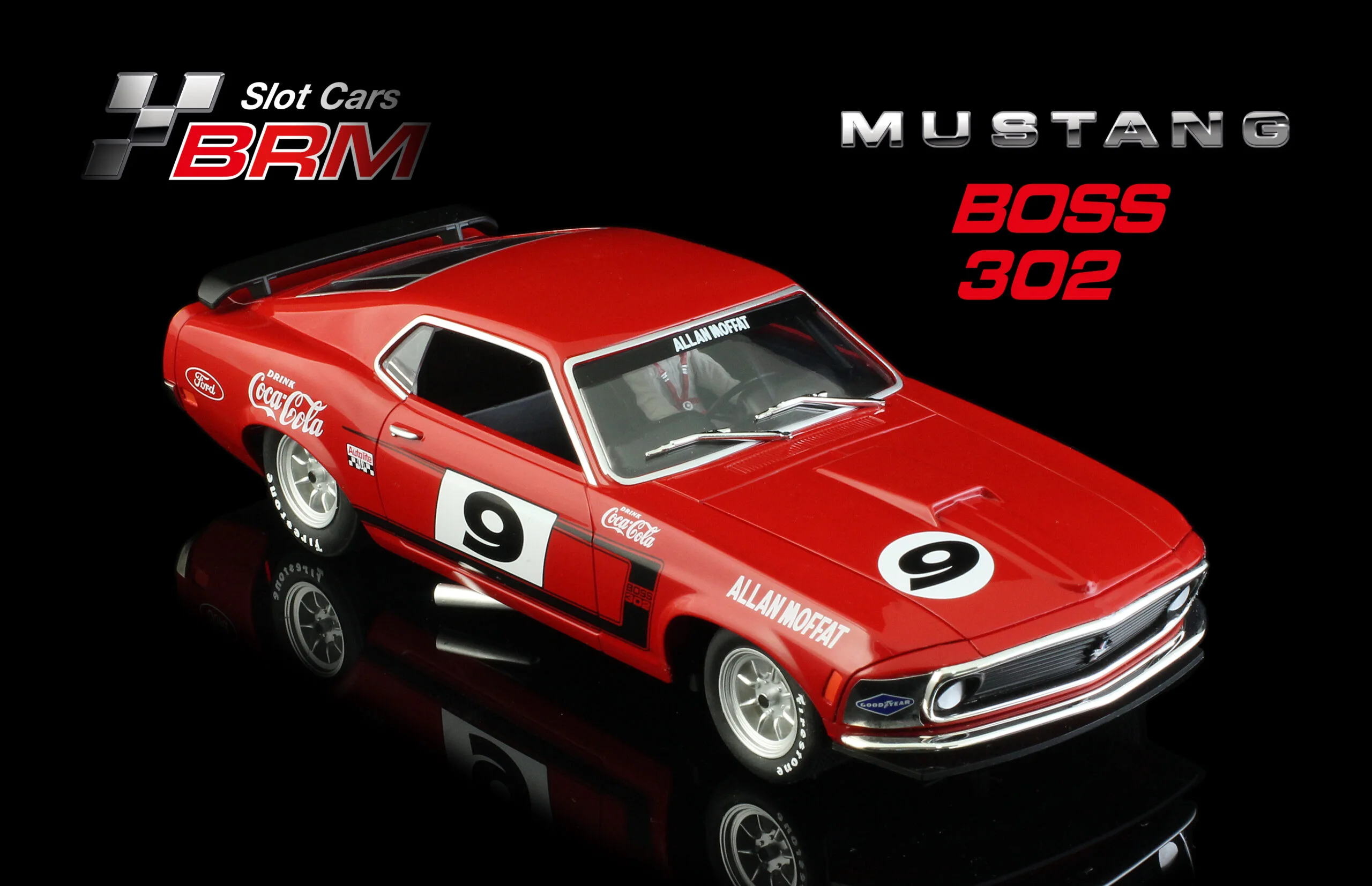 MUSTANG BOSS 302 – Trans-AM Mustang 1970 - #9 Allan Moffat Racing Team Allan Moffat - Slotcar Maßstab 1:24 analog BRM in Rennversion mit Metall-Chassis