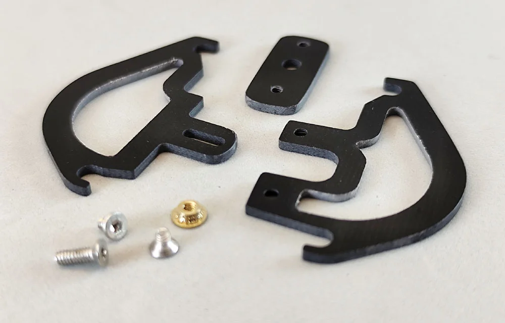 – 2 Gewichtshalter GFK schwarz in 1,5 mm, plus die Messing-Gewichte, jeweils in der Stärke der gewählten Messing-Basisplatte