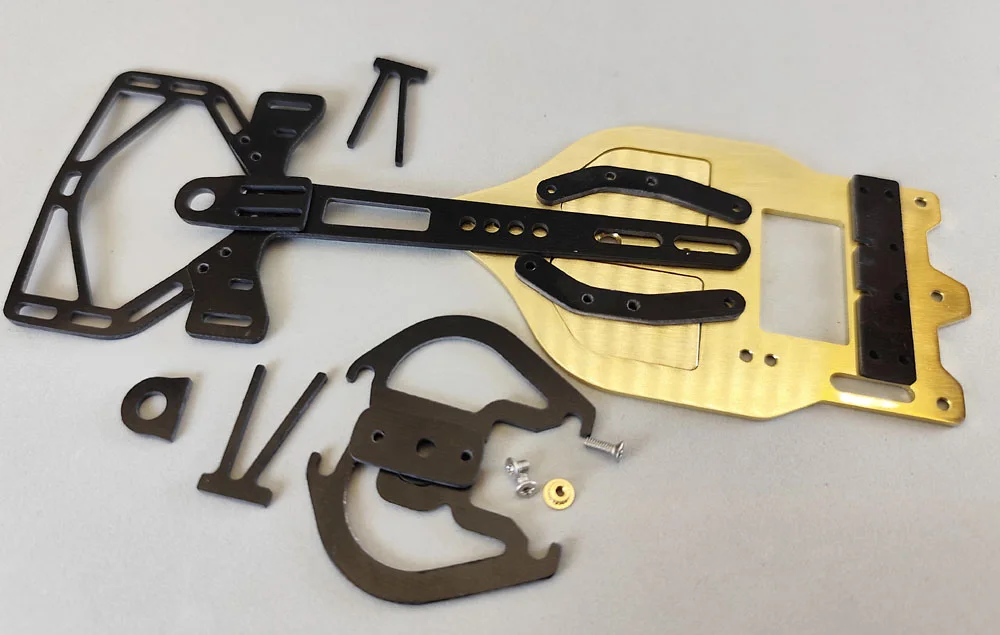 Das von uns entwickelte Formel-Chassis besteht aus Messing und ist in Materialstärken von 1,5 mm und 2,0 mm erhältlich. Dadurch lässt sich das Fahrzeuggewicht flexibel anpassen, abhängig von der Art der Karosserie oder dem Deckel des Slotcars.