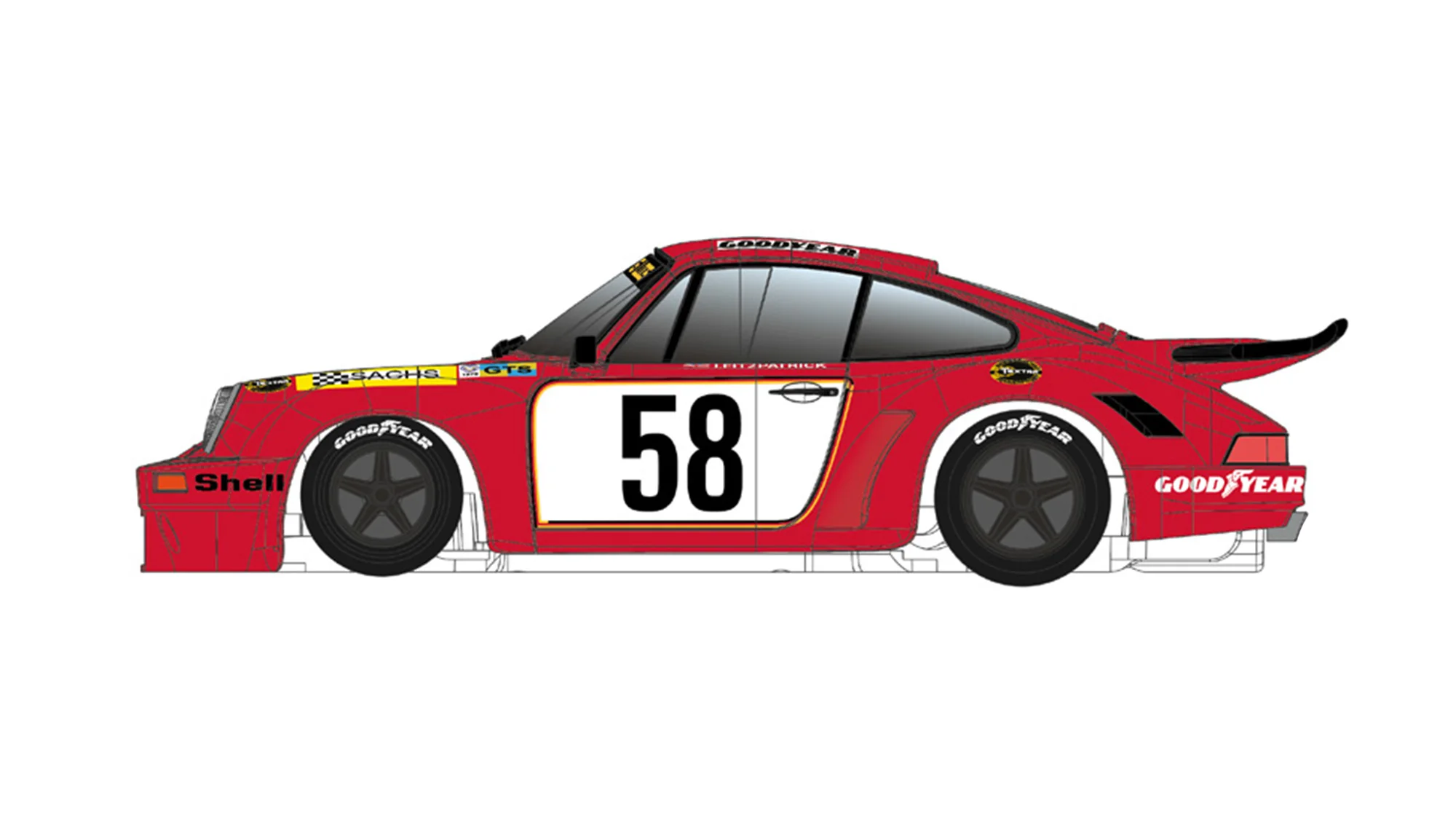 Scaleauto Slotcar Maßstab 1:32 analog SCALEAUTO RSR No. 58 in Rennversion mit Kunststoff-Chassis