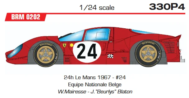 Slotcar 1:24 Analog BRM - Ferrari 330P4 24h Le Mans 1967 - #24 Equipe Nationale Belge W.Mairesse - J.”Beurlys” Blaton — Rennversion, Metall-Chassis