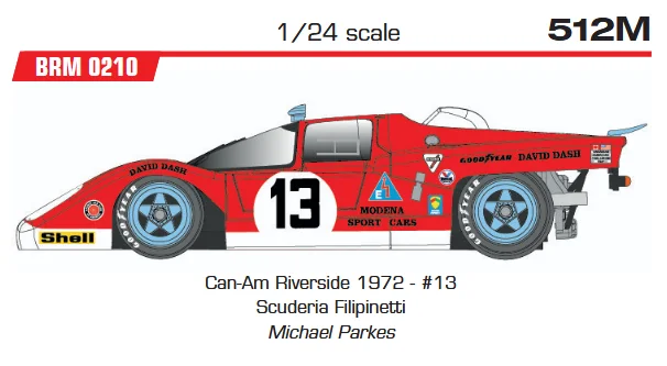 Slotcar 1:24 Analog BRM - Ferrari 512M Can-Am Riverside 1972 - #13 Scuderia Filipinetti Michael Parkes — Rennversion, Metall-Chassis