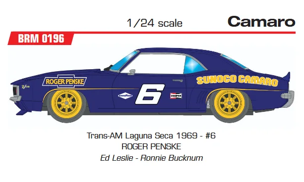 CAMARO Z28 1969 – SUNOCO – Trans-AM Laguna Seca 1969 - #6 ROGER PENSKE Ed Leslie - Ronnie Bucknum - Slotcar Maßstab 1:24 analog BRM