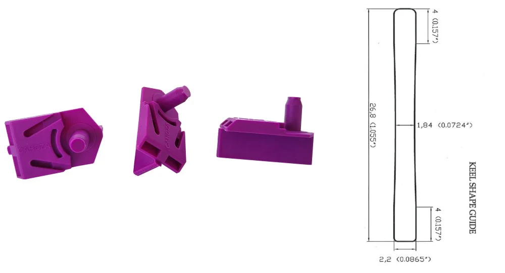 Original Text: LONG CUT DOWN NYLON GUIDE long cut down guide for integral guide tongue chassis, lenght 26.8 mm, special shape of keel (see picture), content: violet nylon, glass fibre, these guides have higher content of glass fibre, they are more tough, very precise, high quality material used